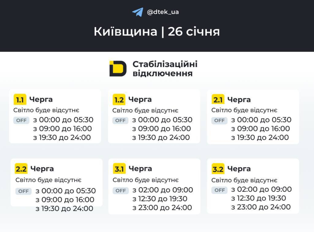 • Поточний режим. Діють офіційні графіки вашого населеного пункту.