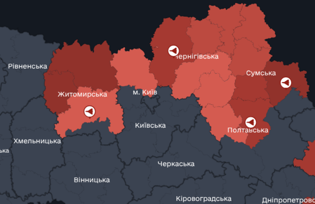- Повітряна тривога оголошена в більшості регіонів поблизу Києва та області.