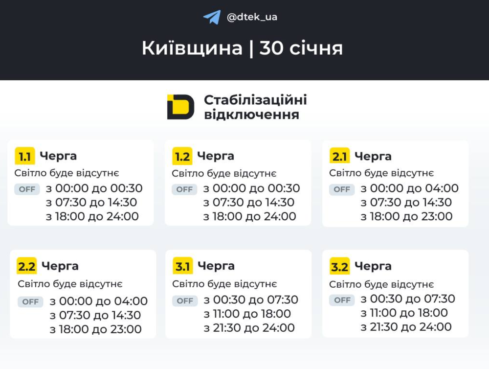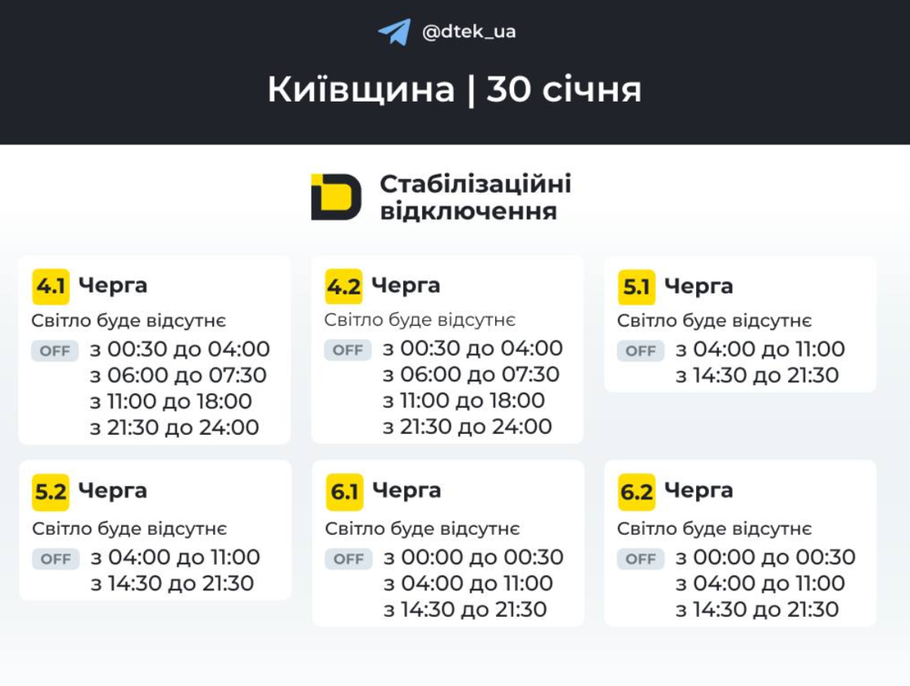 "У разі змін будемо вас інформувати в нашому телеграм-каналі. Підписуйтесь та поділіться, будь ласка, з друзями та родичами", — закликає ДТЕК