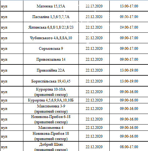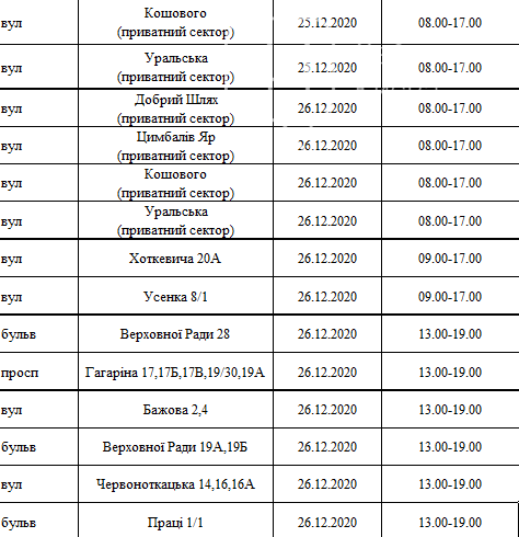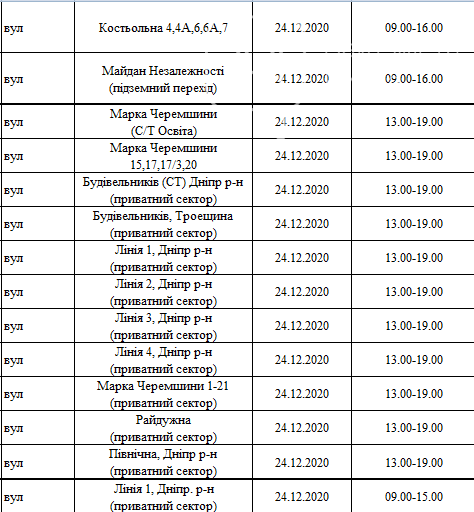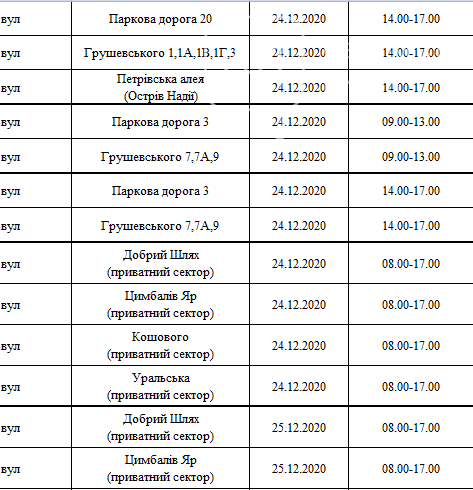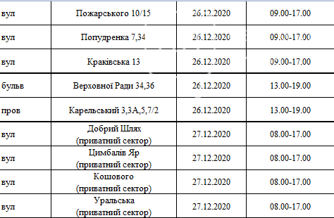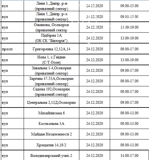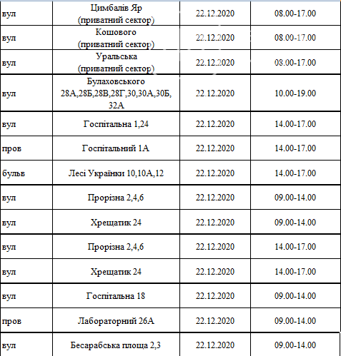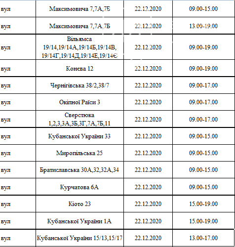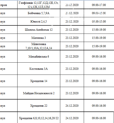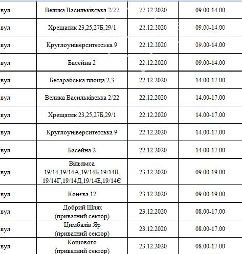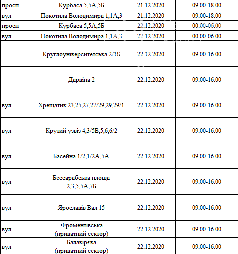 Киев, 22-27 декабря 2020: график отключений электроэнергии: