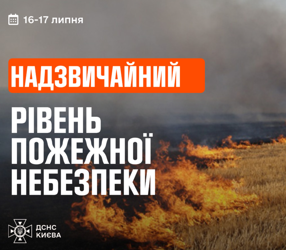 Сьогодні, 16 липня, по всьому місту оголошено надзвичайний рівень пожежної небезпеки. Про це повідомляє прес-служба ДСНС Києва у фейсбук.